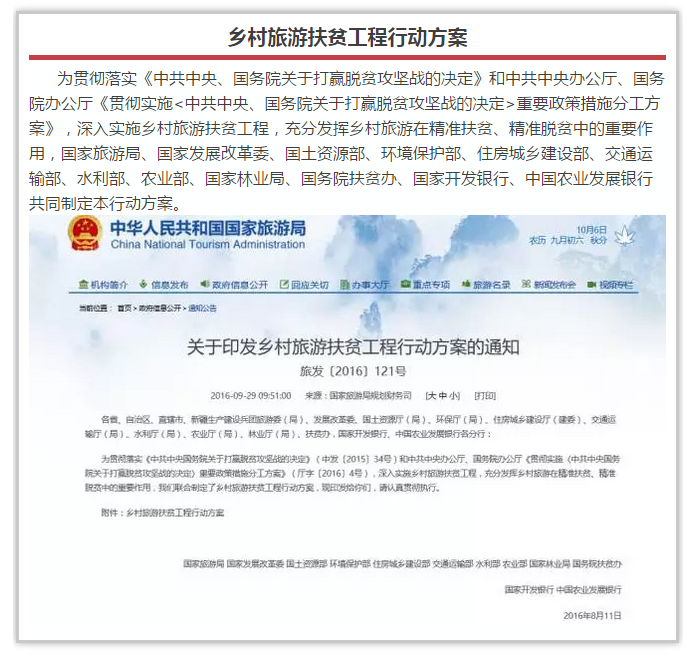據(jù)悉,鄉(xiāng)村旅游扶貧工程是使鄉(xiāng)村旅游扶貧重點村年旅游經(jīng)營收入達100萬元,貧困人口年人均旅游收入達1萬元以上。