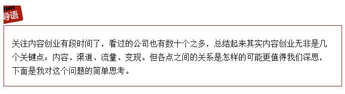 總結(jié)來(lái)說(shuō),內(nèi)容創(chuàng)業(yè)領(lǐng)域形成了流量二次分發(fā)、IP分散化的趨勢(shì),不管未來(lái)渠道、流量和變現(xiàn)方式發(fā)生怎樣的變化,但核心不變就是好的內(nèi)容,只有持續(xù)創(chuàng)造好的內(nèi)容,內(nèi)容創(chuàng)業(yè)才有機(jī)會(huì)。
