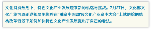 近年來在國家文化產(chǎn)業(yè)的支持下,全國各地都在積極推動特色文化產(chǎn)業(yè),通過納入發(fā)展規(guī)劃、制定相應(yīng)政策、發(fā)掘文化資源,將特色文化產(chǎn)業(yè)作為先導(dǎo)性產(chǎn)業(yè)加快發(fā)展,不斷壯大文化產(chǎn)業(yè)的整體實力。中央財政文化產(chǎn)業(yè)專項資金,去年開始支持特色文化產(chǎn)業(yè)發(fā)展,實際上是從2014年開始,真金白銀支持了數(shù)十個項目,大大提振了文化特色產(chǎn)業(yè)發(fā)展的積極性??梢灶A(yù)計,隨著國家經(jīng)濟結(jié)構(gòu)的調(diào)整和供給側(cè)改革的不斷深入,特色文化產(chǎn)業(yè)必將成為“十三五”時期我國文化產(chǎn)業(yè)發(fā)展的新亮點。因而我認(rèn)為,在之前的發(fā)展基礎(chǔ)上,未來特色文化產(chǎn)業(yè)發(fā)展還應(yīng)該在以下幾個方面下功夫。