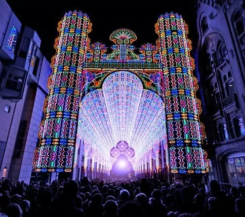 里昂燈光節(jié)堪稱傳統(tǒng)與現(xiàn)代的完美結(jié)合,每年吸引超過(guò)400萬(wàn)游客前來(lái)觀賞。燈光節(jié)時(shí),里昂的每戶居民都會(huì)在自家窗戶外擺放蠟燭,同時(shí),城中的宗教場(chǎng)所以及一些公共場(chǎng)所也會(huì)擺放蠟燭,以營(yíng)造滿街燭光的效果。