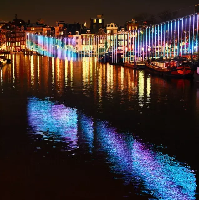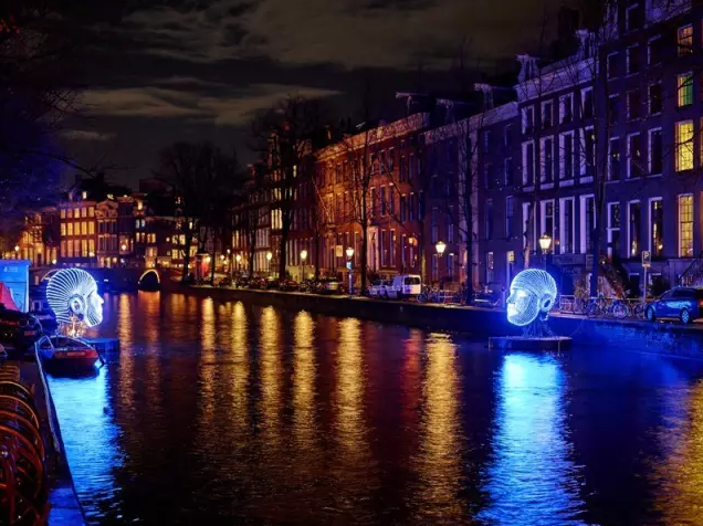 節(jié)日期間,阿姆斯特丹的標(biāo)志性文化場(chǎng)所將一一被燈光裝點(diǎn),絢爛的燈光縱橫運(yùn)河及周邊街道和廣場(chǎng),游客可以乘坐專門提供的觀燈船只順流觀賞被燈光裝飾一新的城市。其中有水路參觀的獨(dú)特視角,也有街區(qū)參觀的豐富多彩,多彩燈光照亮了這個(gè)寒冷的北國(guó)城市,成為了一個(gè)真正的城市燈光與現(xiàn)代國(guó)際燈光相接軌的藝術(shù)城市,不僅僅是為城市帶來(lái)了生機(jī)和活力,更為國(guó)內(nèi)外年輕藝術(shù)家提供了一個(gè)展示新作品的平臺(tái)。