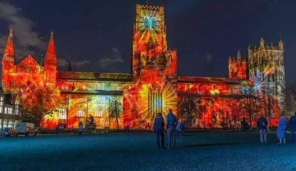 英格蘭東北部的杜倫每?jī)赡暌粚玫摹氨R米埃爾燈光秀”是英國(guó)最大的燈光節(jié)。燈節(jié)舉辦期間,這座人口不到5萬(wàn)人的小城涌入來(lái)自世界各地的游客。每一屆Lumiere燈節(jié)的重頭戲都會(huì)發(fā)生在建于11世紀(jì)的杜倫大教堂。