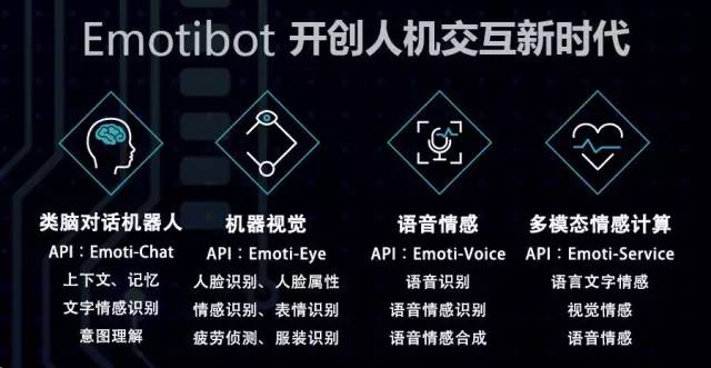 這些其實都源于 Emotibot 的底層機器人算法技術(shù),上述都只是一整套人機交互邏輯中的一個點。Emotibot 還開發(fā)了可以在對話框識別文字意圖和語音情感的 API 接口,相應也有上下文邏輯連續(xù)的文字表達和語音合成程序,這樣的擬人化對話輸出設(shè)計。