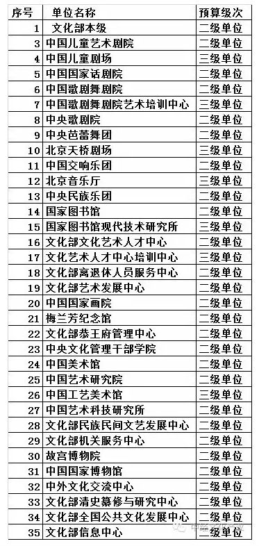 備注:納入文化部2015年部門決算的預(yù)算單位共有37, 其中二級單位30家, 三級單位7家。