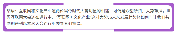 互聯(lián)網化帶來了信息爆炸的時代,傳統(tǒng)文化產業(yè)需要更多的媒體,渠道,宣傳出口?;ヂ?lián)網技術與資源的的投入,將為文化產業(yè)注入新的發(fā)展活力。大量的傳統(tǒng)文娛公司把互聯(lián)網看做未來發(fā)展的出口,而新興的文娛公司也把互聯(lián)網作為開拓市場的先鋒營。