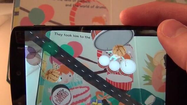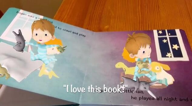 這本插畫書有32頁(yè),只要將其與手機(jī)app配合起來(lái),每頁(yè)的小人都可以活靈活現(xiàn)地動(dòng)起來(lái)。例如書上的靜態(tài)插畫是小男孩哄玩具兔子睡覺(jué),打開手機(jī)app,對(duì)準(zhǔn)插畫,屏幕里的小男孩就“活”了,他會(huì)輕搖并輕拍玩具兔子,怎一個(gè)可愛(ài)了得。