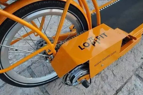 在車輪后方帶有一個250W的驅動馬達,當行走時就能帶動馬達轉動,從而使履帶循環(huán)滾動,讓自行車行駛。車速也取決于使用者步行的速度,具有6當速度可調,最高時速可達25公里/小時,續(xù)航可達55公里。
