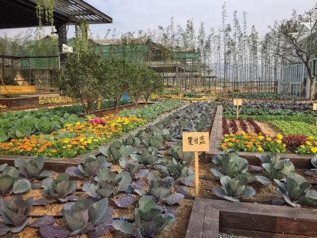 內(nèi)園種植大片紫甘藍(lán)和青菜,邊緣雜種鮮花、藍(lán)莓,還有專門(mén)的蔥蒜韭菜區(qū)、竹筍區(qū)和蜜蜂養(yǎng)殖區(qū),主要用以滿足農(nóng)場(chǎng)主的日常生活。