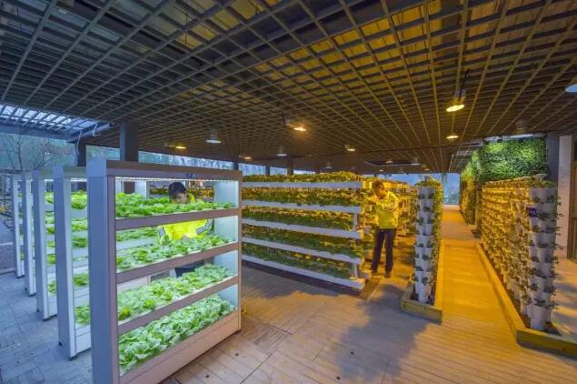 一樓仍用于農(nóng)業(yè)生產(chǎn)。一個(gè)32㎡的垂直多層水培,種菜面積就有160㎡,產(chǎn)量是傳統(tǒng)的3—5倍,還可以半自動(dòng)或全自動(dòng)管理。