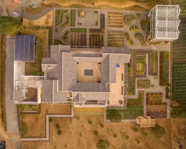 農(nóng)莊占地面積約20畝,主體是一棟落地約500㎡的中式宅院。戶外,便是前庭、后院、菜園,再到大片農(nóng)田和果林的“庭院園田”四級(jí)體系。