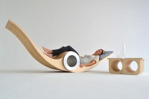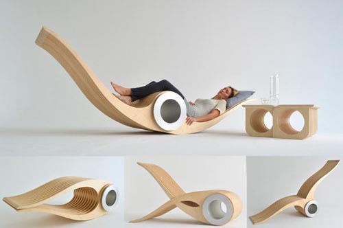 一把可以像水中魚(yú)兒一樣靈活多變的椅子,椅子用原木制作而成,整個(gè)椅子造型被設(shè)計(jì)成魚(yú)形狀,在以魚(yú)頭作為固定中心,尾巴可以進(jìn)行多維度翻轉(zhuǎn),以適應(yīng)人們各種使用體驗(yàn),你可以把它當(dāng)做座椅、躺椅、靠椅或者凳子來(lái)使用。這樣一件多功能創(chuàng)意椅子,感覺(jué)可以代替好幾樣家具,閱讀、冥想、打盹、吃零食,還能愉快的玩耍。