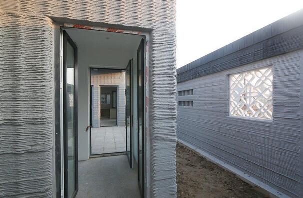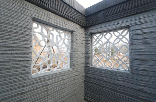 建房的材料是水泥混凝土,與普通人造房屋不同,3D打印出來(lái)的墻體是凹凸不平的波浪形。造房的整個(gè)過(guò)程都是由電腦程序控制完成。按照設(shè)計(jì)圖,用3D打印機(jī)噴嘴噴出高密度、高性能混凝土,逐層打印出墻壁和隔間、裝飾等。再用機(jī)械手臂完成整座房子的基本架構(gòu)。