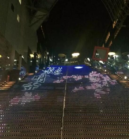 從屋頂往下走有一段大階梯,一路從11層到達4層。階梯上還設(shè)計了投影,惹不少人駐足觀賞。