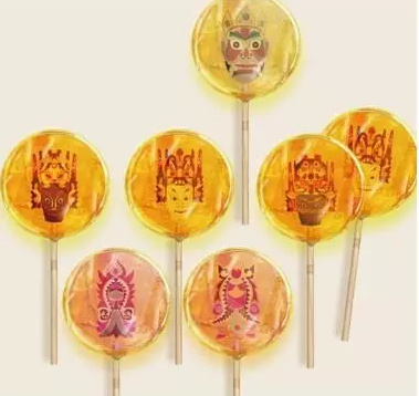 這充滿甜蜜蜜的棒棒糖,是貴州知覺(jué)文化傳播有限公司的創(chuàng)意,里面加入貴州在地文化的精粹——“儺戲”,吃一口波板糖回憶童年,想起家鄉(xiāng),別有一番風(fēng)味。