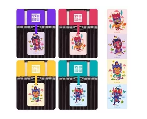 來(lái)自設(shè)計(jì)師畢筱汐的這件作品,采用了貴州精粹儺戲?yàn)橹黝}的行李牌,用偏艷麗的色彩和滑稽的表情動(dòng)作相結(jié)合,讓人愛(ài)不釋手,馬上就相帶回家。