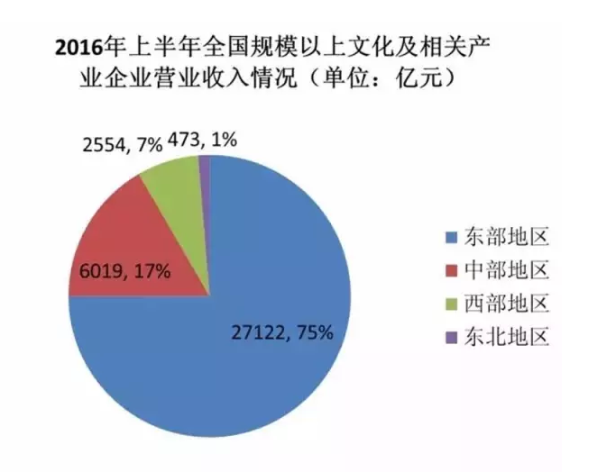 可以看出,東部地區(qū)文化產(chǎn)業(yè)企業(yè)收入以75%的占比保持絕對(duì)優(yōu)勢(shì),中西部地區(qū)雖數(shù)值較低,但增速已超過(guò)東部地區(qū),區(qū)域差距正在逐步縮小。而東北地區(qū)文化產(chǎn)業(yè)的負(fù)增長(zhǎng)尤其值得關(guān)注,在專家看來(lái),在經(jīng)濟(jì)發(fā)展新常態(tài)的背景下,文化產(chǎn)業(yè)可以成為助推經(jīng)濟(jì)結(jié)構(gòu)轉(zhuǎn)型升級(jí)的重要引擎。