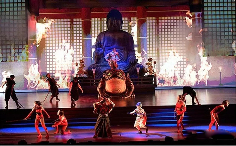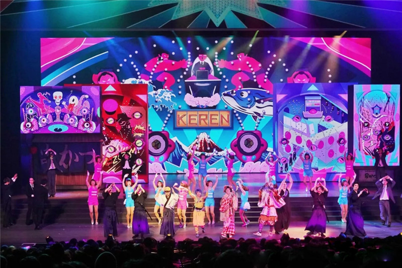 KEREN是以日本獨有的藝能、動漫、忍者、武士、富山、妖怪、四季、巨大金槍魚等傳統(tǒng)元素為主題,結合超炫酷的多媒體技術和創(chuàng)新的藝術手法所呈現的一場超級舞臺秀,整場演出以關西為舞臺,將古今的日本情景用畫卷的風格來呈現。