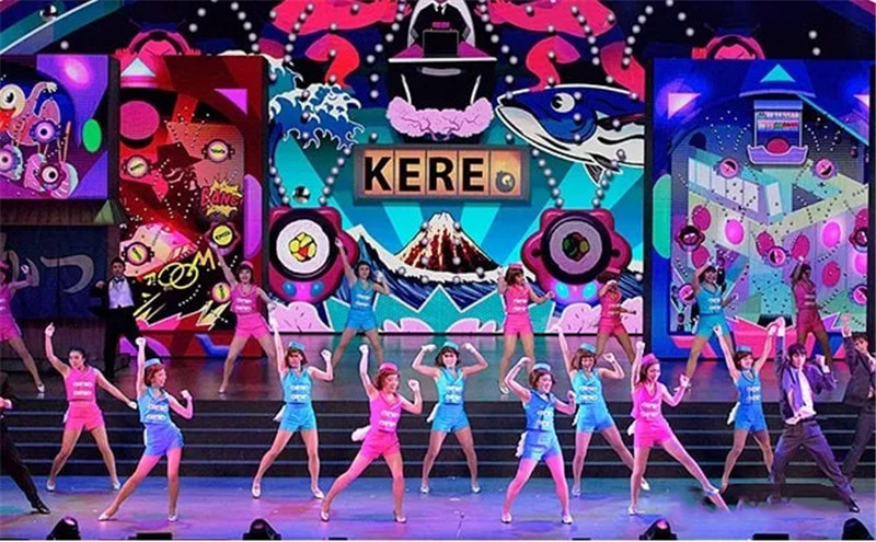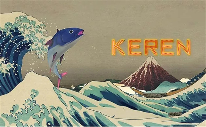 舞臺上出現充滿現代風格的巨型金槍魚和“KEREN”的字樣