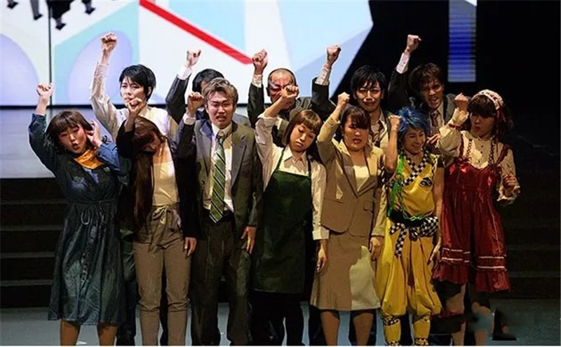 世界著名的日本畫家葛飾北齋的《富岳三十六景·神奈川沖浪里》在演出中發(fā)揮了重要作用。雖然,演出是否有意識將該畫搬上舞臺不得而知,但仍不禁使人感受到這幅英語名稱為“The Great Wave”的版畫出現在舞臺上具有深刻的含義。它也許是期望現場娛樂行業(yè)如該畫英文名中所示的“新潮流”一樣不斷壯大發(fā)展,亦或是在展現像一艘迎著畫中的大浪前行的運輸船,席卷非語言演出市場的抱負。誕生于關西的“KEREN”將向世界不斷展現非語言表演新的發(fā)展空間。