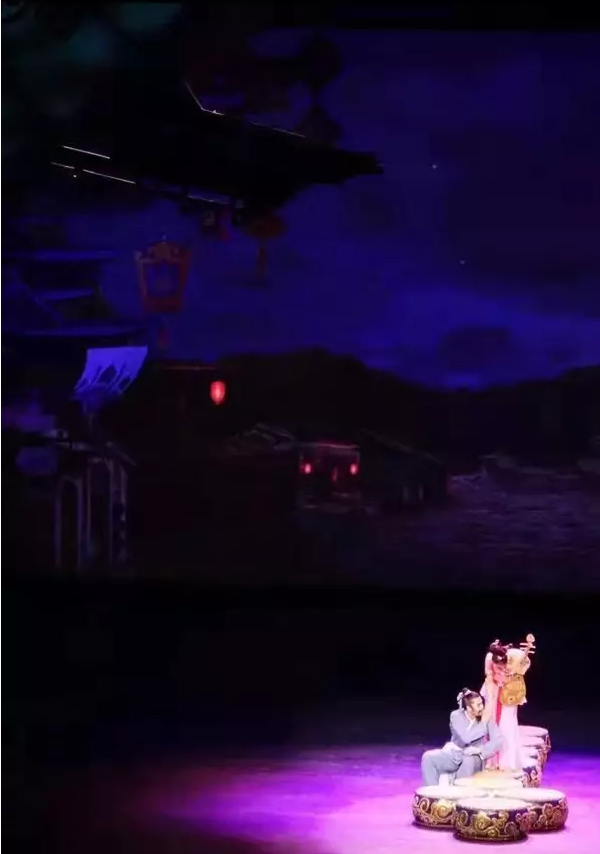 臺階與地面作地屏聯(lián)動投影,形象呈現(xiàn)故事背景