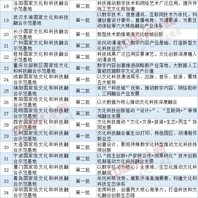 附:前兩批34家國(guó)家文化和科技融合示范基地名單及發(fā)展特色