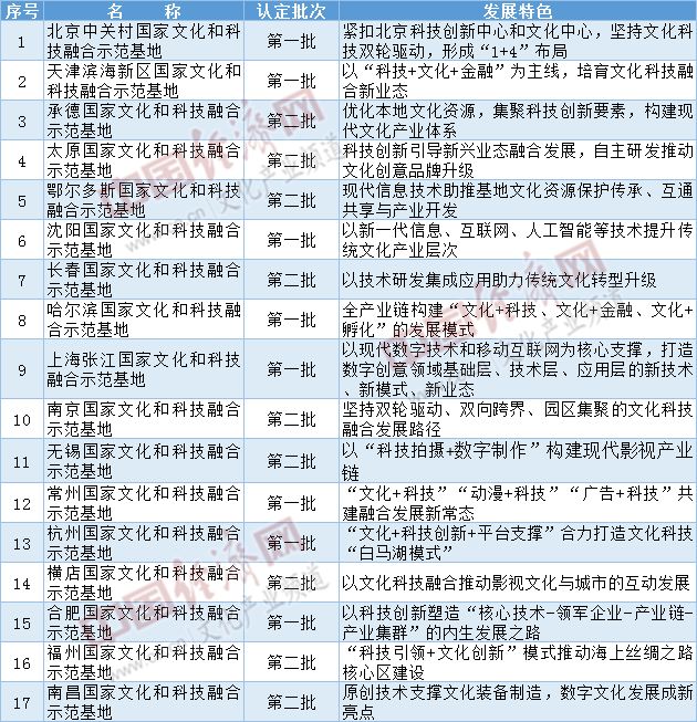 國(guó)家文化和科技融合示范基地名單